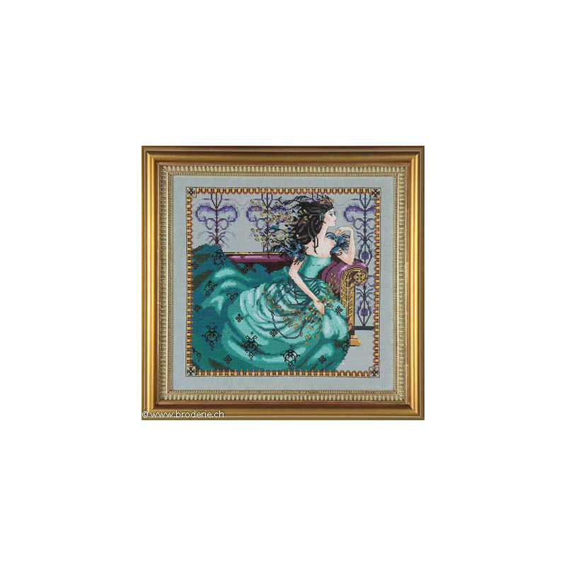 L'article 'Mirabilia, grille Cassiopeia (MD131)' fait partie de notre assortiment depuis le 4 août 2014. Mirabilia est un très belle gamme américaine de grands modèles de points de croix comptés, dessins créés par Nora Corbett. Ils représentent essentiellement des fées, elfes et élégantes dames. Presque chaque modèle nécessite des perles de la maison Mill Hill et parfois des fils Kreinik et/ou Caron. Nous vous obtenons rapidement aussi ces accessoires s'ils ne sont pas de stock. Pour l'instant, nous avons précisé sur le site les perles et fils nécessaires aux modèles de stock. Pour les autres, en attendant que nous le fassions, vous trouvez facilement ces indications sur www.mirabilia.com en recherchant le numéro du modèle. Nous vous communiquons volontiers une fourchette de prix pour les accessoires. Merci de faire attention à ce "détail" car il n'en est plus un lorsqu'il y a plusieurs paquets de perles, plusieurs fils différents ... et cela doit être pris en compte dans le prix de revient ... Fiche technique : points de croix - quelques demi-points, perles et fils métallisés. Pas de difficulté particulière ... mais quelques modèles sont complexes par la quantité de perles et les fils métallisés, et demandent un fin doigté. La trame utilisée le plus souvent est le lin 11 fils/cm, et sa teinte bien choisie rehaussera le modèle.