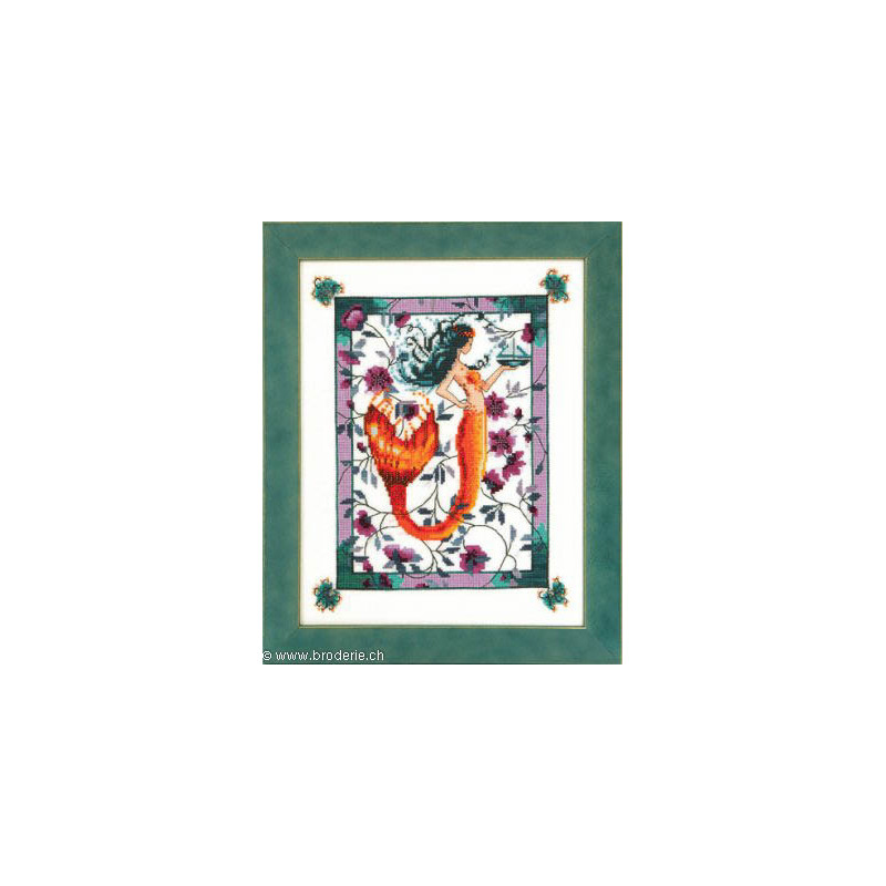 L'article 'Mirabilia Nora Corbett, grille Sunrise Laguna Mermaid (NC211)' fait partie de notre assortiment depuis le 4 août 2014. Mirabilia est un très belle gamme américaine de grands modèles de points de croix comptés, dessins créés par Nora Corbett. Ils représentent essentiellement des fées, elfes et élégantes dames. Presque chaque modèle nécessite des perles de la maison Mill Hill et parfois des fils Kreinik et/ou Caron. Nous vous obtenons rapidement aussi ces accessoires s'ils ne sont pas de stock. Pour l'instant, nous avons précisé sur le site les perles et fils nécessaires aux modèles de stock. Pour les autres, en attendant que nous le fassions, vous trouvez facilement ces indications sur www.mirabilia.com en recherchant le numéro du modèle. Nous vous communiquons volontiers une fourchette de prix pour les accessoires. Merci de faire attention à ce "détail" car il n'en est plus un lorsqu'il y a plusieurs paquets de perles, plusieurs fils différents ... et cela doit être pris en compte dans le prix de revient ... Fiche technique : points de croix - quelques demi-points, perles et fils métallisés. Pas de difficulté particulière ... mais quelques modèles sont complexes par la quantité de perles et les fils métallisés, et demandent un fin doigté. La trame utilisée le plus souvent est le lin 11 fils/cm, et sa teinte bien choisie rehaussera le modèle.