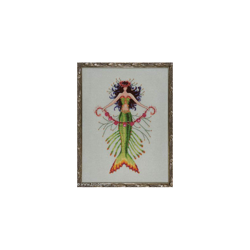 L'article 'Mirabilia Nora Corbett, grille Mermaid Coral charms (NC193)' fait partie de notre assortiment depuis le 17 janvier 2015. Mirabilia est un très belle gamme américaine de grands modèles de points de croix comptés, dessins créés par Nora Corbett. Ils représentent essentiellement des fées, elfes et élégantes dames. Presque chaque modèle nécessite des perles de la maison Mill Hill et parfois des fils Kreinik et/ou Caron. Nous vous obtenons rapidement aussi ces accessoires s'ils ne sont pas de stock. Pour l'instant, nous avons précisé sur le site les perles et fils nécessaires aux modèles de stock. Pour les autres, en attendant que nous le fassions, vous trouvez facilement ces indications sur www.mirabilia.com en recherchant le numéro du modèle. Nous vous communiquons volontiers une fourchette de prix pour les accessoires. Merci de faire attention à ce "détail" car il n'en est plus un lorsqu'il y a plusieurs paquets de perles, plusieurs fils différents ... et cela doit être pris en compte dans le prix de revient ... Fiche technique : points de croix - quelques demi-points, perles et fils métallisés. Pas de difficulté particulière ... mais quelques modèles sont complexes par la quantité de perles et les fils métallisés, et demandent un fin doigté. La trame utilisée le plus souvent est le lin 11 fils/cm, et sa teinte bien choisie rehaussera le modèle.