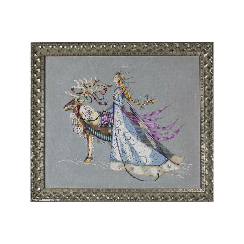 L'article 'Mirabilia, grille The The Snow Queen (MD143)' fait partie de notre assortiment depuis le 25 février 2016. Mirabilia est un très belle gamme américaine de grands modèles de points de croix comptés, dessins créés par Nora Corbett. Ils représentent essentiellement des fées, elfes et élégantes dames. Presque chaque modèle nécessite des perles de la maison Mill Hill et parfois des fils Kreinik et/ou Caron. Nous vous obtenons rapidement aussi ces accessoires s'ils ne sont pas de stock. Pour l'instant, nous avons précisé sur le site les perles et fils nécessaires aux modèles de stock. Pour les autres, en attendant que nous le fassions, vous trouvez facilement ces indications sur www.mirabilia.com en recherchant le numéro du modèle. Nous vous communiquons volontiers une fourchette de prix pour les accessoires. Merci de faire attention à ce "détail" car il n'en est plus un lorsqu'il y a plusieurs paquets de perles, plusieurs fils différents ... et cela doit être pris en compte dans le prix de revient ... Fiche technique : points de croix - quelques demi-points, perles et fils métallisés. Pas de difficulté particulière ... mais quelques modèles sont complexes par la quantité de perles et les fils métallisés, et demandent un fin doigté. La trame utilisée le plus souvent est le lin 11 fils/cm, et sa teinte bien choisie rehaussera le modèle.