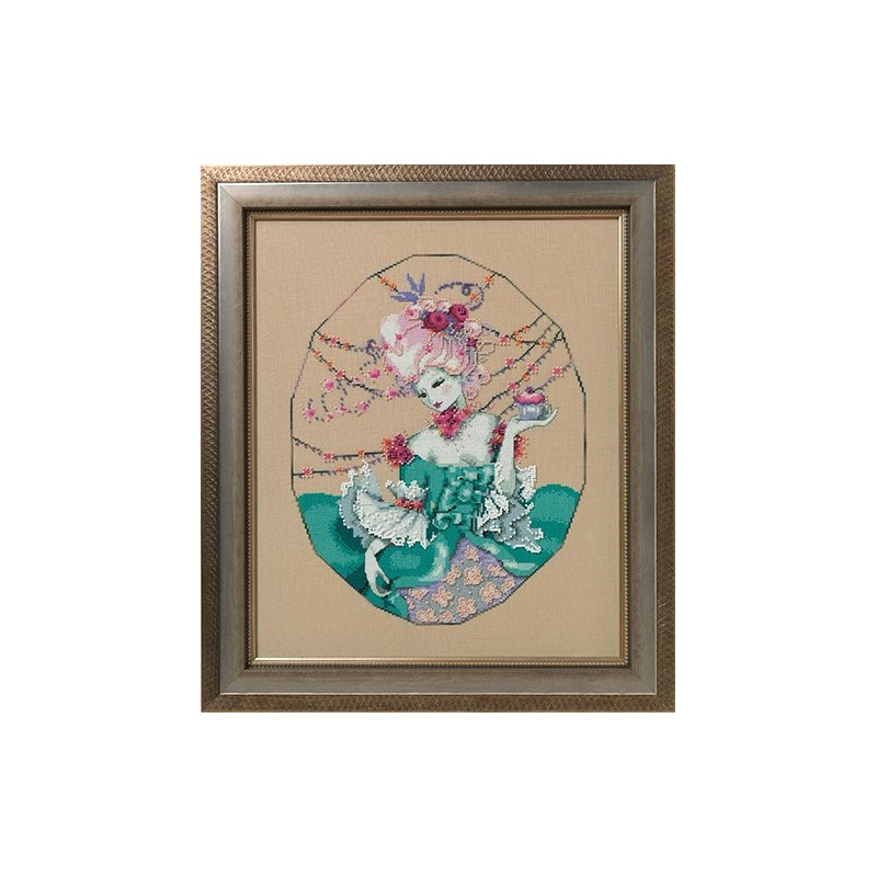L'article 'Mirabilia, grille The Baker's Wife (MD166)' fait partie de notre assortiment depuis le 18 octobre 2019. Mirabilia est un très belle gamme américaine de grands modèles de points de croix comptés, dessins créés par Nora Corbett. Ils représentent essentiellement des fées, elfes et élégantes dames. Presque chaque modèle nécessite des perles de la maison Mill Hill et parfois des fils Kreinik et/ou Caron. Nous vous obtenons rapidement aussi ces accessoires s'ils ne sont pas de stock. Pour l'instant, nous avons précisé sur le site les perles et fils nécessaires aux modèles de stock. Pour les autres, en attendant que nous le fassions, vous trouvez facilement ces indications sur www.mirabilia.com en recherchant le numéro du modèle. Nous vous communiquons volontiers une fourchette de prix pour les accessoires. Merci de faire attention à ce "détail" car il n'en est plus un lorsqu'il y a plusieurs paquets de perles, plusieurs fils différents ... et cela doit être pris en compte dans le prix de revient ... Fiche technique : points de croix - quelques demi-points, perles et fils métallisés. Pas de difficulté particulière ... mais quelques modèles sont complexes par la quantité de perles et les fils métallisés, et demandent un fin doigté. La trame utilisée le plus souvent est le lin 11 fils/cm, et sa teinte bien choisie rehaussera le modèle.