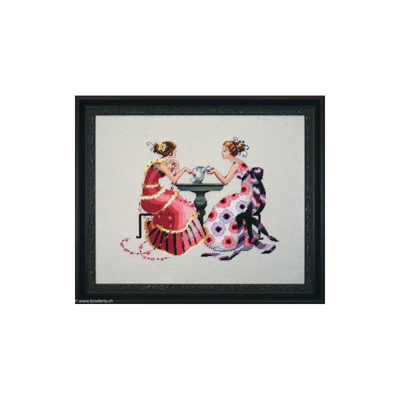 L'article 'Mirabilia, grille Tea (MD182)' fait partie de notre assortiment depuis le 15 août 2022. Mirabilia est un très belle gamme américaine de grands modèles de points de croix comptés, dessins créés par Nora Corbett. Ils représentent essentiellement des fées, elfes et élégantes dames. Presque chaque modèle nécessite des perles de la maison Mill Hill et parfois des fils Kreinik et/ou Caron. Nous vous obtenons rapidement aussi ces accessoires s'ils ne sont pas de stock. Pour l'instant, nous avons précisé sur le site les perles et fils nécessaires aux modèles de stock. Pour les autres, en attendant que nous le fassions, vous trouvez facilement ces indications sur www.mirabilia.com en recherchant le numéro du modèle. Nous vous communiquons volontiers une fourchette de prix pour les accessoires. Merci de faire attention à ce "détail" car il n'en est plus un lorsqu'il y a plusieurs paquets de perles, plusieurs fils différents ... et cela doit être pris en compte dans le prix de revient ... Fiche technique : points de croix - quelques demi-points, perles et fils métallisés. Pas de difficulté particulière ... mais quelques modèles sont complexes par la quantité de perles et les fils métallisés, et demandent un fin doigté. La trame utilisée le plus souvent est le lin 11 fils/cm, et sa teinte bien choisie rehaussera le modèle.