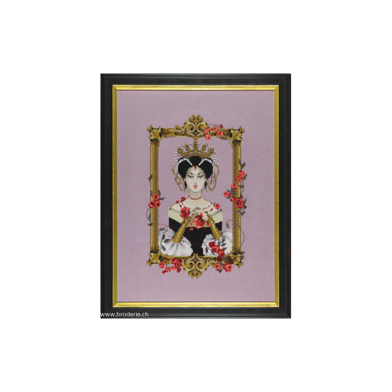 L'article 'Mirabilia, grille Portrait Queen (MD184)' fait partie de notre assortiment depuis le 19 octobre 2022. Mirabilia est un très belle gamme américaine de grands modèles de points de croix comptés, dessins créés par Nora Corbett. Ils représentent essentiellement des fées, elfes et élégantes dames. Presque chaque modèle nécessite des perles de la maison Mill Hill et parfois des fils Kreinik et/ou Caron. Nous vous obtenons rapidement aussi ces accessoires s'ils ne sont pas de stock. Pour l'instant, nous avons précisé sur le site les perles et fils nécessaires aux modèles de stock. Pour les autres, en attendant que nous le fassions, vous trouvez facilement ces indications sur www.mirabilia.com en recherchant le numéro du modèle. Nous vous communiquons volontiers une fourchette de prix pour les accessoires. Merci de faire attention à ce "détail" car il n'en est plus un lorsqu'il y a plusieurs paquets de perles, plusieurs fils différents ... et cela doit être pris en compte dans le prix de revient ... Fiche technique : points de croix - quelques demi-points, perles et fils métallisés. Pas de difficulté particulière ... mais quelques modèles sont complexes par la quantité de perles et les fils métallisés, et demandent un fin doigté. La trame utilisée le plus souvent est le lin 11 fils/cm, et sa teinte bien choisie rehaussera le modèle.