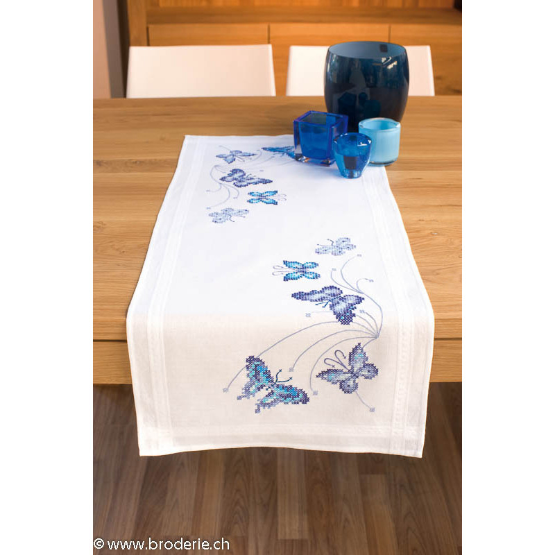 Vervaco, kit imprimé chemin de table papillons bleu (PN0145089)