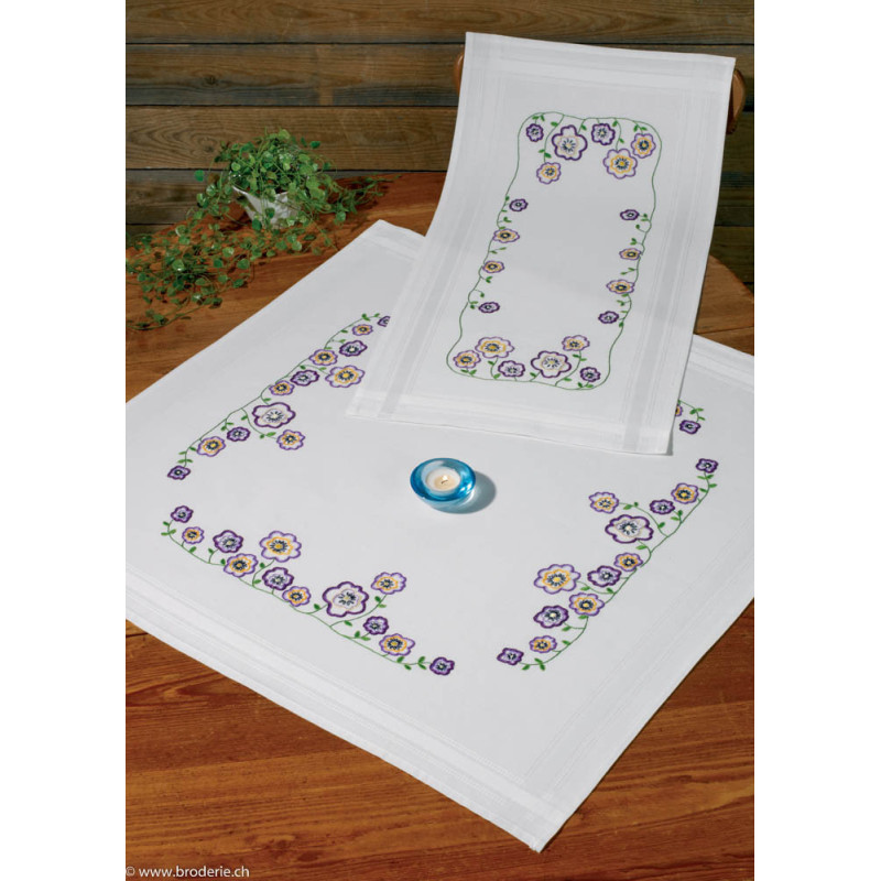 Permin, kit imprimé chemin de table fleurs violettes (PE63-9852)