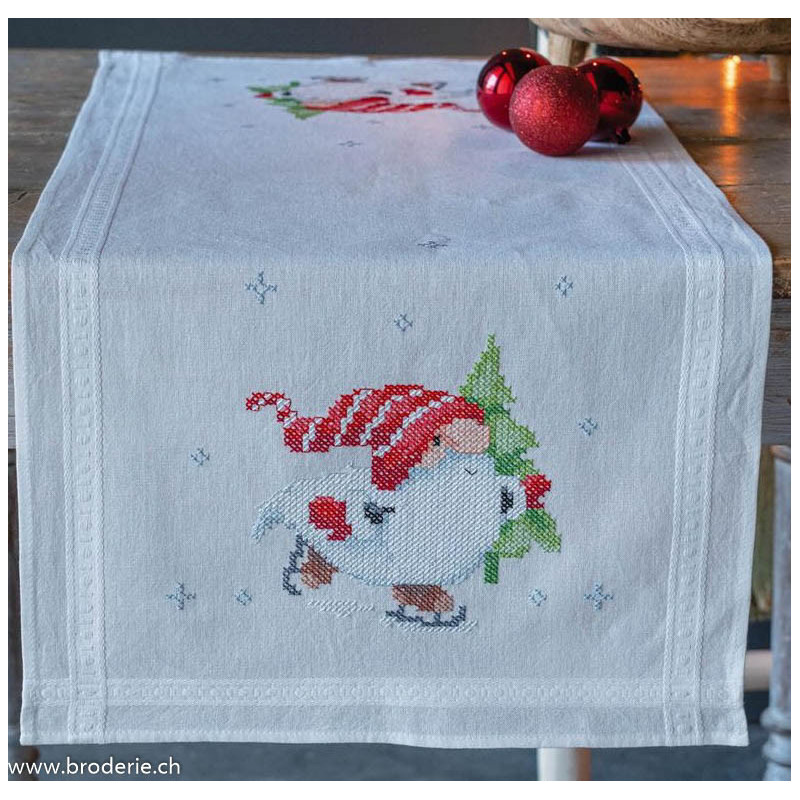 Vervaco, kit imprimé chemin de table Lutins dans la neige (PN0198679)