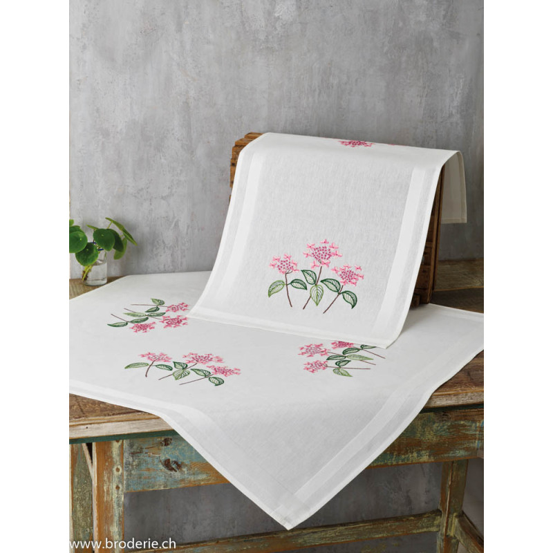 Permin, kit imprimé chemin de table Light pink Hydrangea (PE63-4396)