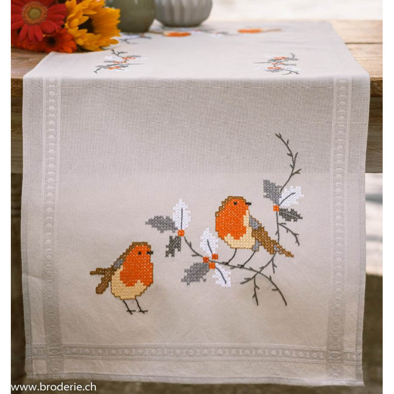 Vervaco, kit imprimé chemin de table Rouge-gorges (PN0201692)