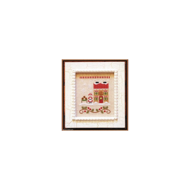 Country Cottage Needleworks, grille Mère NoëlCCNSV4 Mrs. Claus Cookie Shop (art. CCNSV4). Modèle de points de croix comptés, il en existe 12 dans cette série référence CNSV et numéro.