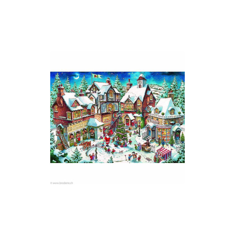 Wizardi, kit diamant Christmas Bustle (art. WIWD2429). Dimensions: 100 x 68 cm. Kit complet de Broderie Diamant comprenant la toile adhésive imprimée à recouvrir de strass, les sachets de strass 'diamants' triés par couleurs, un stylet et sa cire, un réceptacle et les explications. La totalité de la surface est à recouvrir. ATTENTION, ce n'est pas une broderie, pas de fil ni d'aiguille, mais une mosaïque.