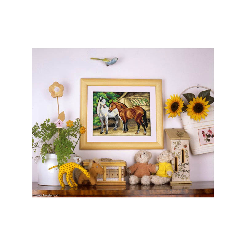 L'article 'Orchidea, kit Chevaux (OR7711)' fait partie de notre assortiment depuis le 4 octobre 2017. La gamme allemande Orchidea propose divers articles différents, dont quelques articles de points de croix comptés très appréciés que nous vous préventons ici. Si vous désirez commander les autres articles, nous pouvons tous vous les obtenir (canevas pur coussins et kits pour enfant. Leurs kits sont tous relativement faciles à réaliser.