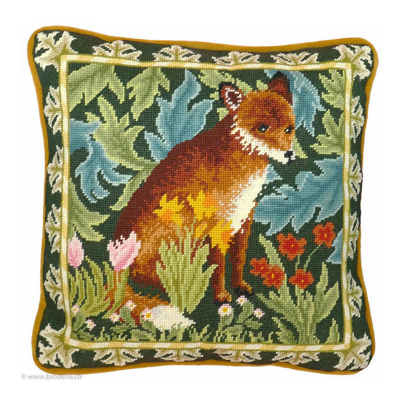 Bothy Threads, kit canevas peint Woodland Fox (art. BOTAC10). Dimensions: 36 x 36 cm. Demi points sur canevas peint de 4 points/cm, dans la même série BOTAC et numéro, modèle de Willliam Morris.