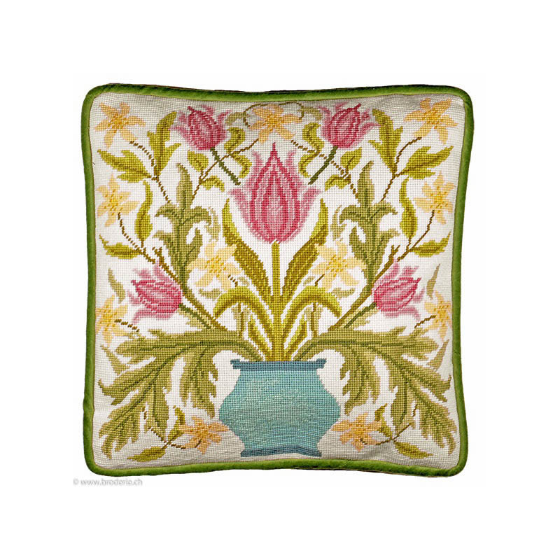 Bothy Threads, kit canevas peint Vase Of Tulips (art. BOTAC14). Dimensions: 36 x 36 cm. Demi points sur canevas peint de 4 points/cm, dans la même série BOTAC et numéro, modèle de Willliam Morris.