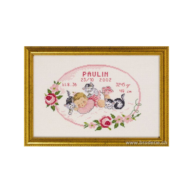 L'article 'Permin, kit naissance fille (PE12-3603)' fait partie de notre assortiment depuis le 1 mai 2008. Permin of Copenhagen est une gamme qui propose de beaux kits de broderie depuis plus de 100 ans. Une belle gamme de broderie de points de croix comptés, de nappes imprimées et de tapisseries aussi. Vous trouverez dans la collection Permin of Copenhagen beaucoup de paysages (notamment aussi en teintes sépia), des reprodutions d'anciens marquoirs et abécédaires antiques (sampler antiques), et de belles broderies d'animaux, et beaucoup de broderie pour Noël (calendriers de l'Avant, Père-Noël ). Sur le site vous avez aussi sous la rubrique minikit tous les petits kits de Noël ou autres relativement vite réalisés et aussi des kits faciles pour commencer, sur une trame Aïda 3.2 points/cm (kit facile à mettre dans la rubtique recherche. Fiche technique : merci de bien regarder ce que vous désirez, points de croix comptés (parfois les kits sont disponibles sur aïda ou lin), quelques tapisseries, nappes. Les kits prévus spécialement pour les enfants qui commencent le point de croix sont sous la rubrique "kits pour enfants- points de croix compté".