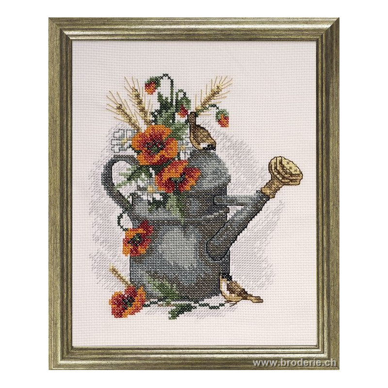 L'article 'Permin, kit facile Arrosoir et coquelicots (PE12-4514)' fait partie de notre assortiment depuis le 1 mai 2008. Permin of Copenhagen est une gamme qui propose de beaux kits de broderie depuis plus de 100 ans. Une belle gamme de broderie de points de croix comptés, de nappes imprimées et de tapisseries aussi. Vous trouverez dans la collection Permin of Copenhagen beaucoup de paysages (notamment aussi en teintes sépia), des reprodutions d'anciens marquoirs et abécédaires antiques (sampler antiques), et de belles broderies d'animaux, et beaucoup de broderie pour Noël (calendriers de l'Avant, Père-Noël ). Sur le site vous avez aussi sous la rubrique minikit tous les petits kits de Noël ou autres relativement vite réalisés et aussi des kits faciles pour commencer, sur une trame Aïda 3.2 points/cm (kit facile à mettre dans la rubtique recherche. Fiche technique : merci de bien regarder ce que vous désirez, points de croix comptés (parfois les kits sont disponibles sur aïda ou lin), quelques tapisseries, nappes. Les kits prévus spécialement pour les enfants qui commencent le point de croix sont sous la rubrique "kits pour enfants- points de croix compté".
