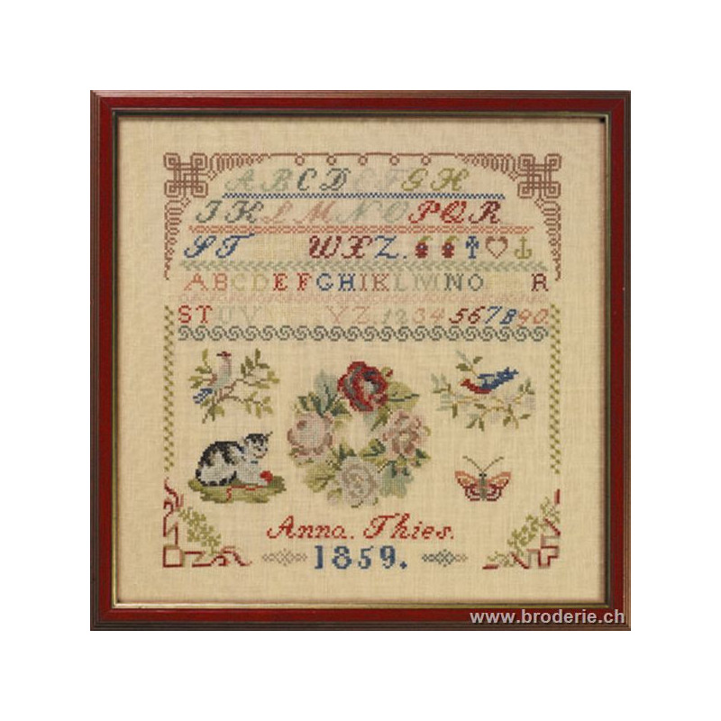 L'article 'Permin, ABC sampler antique1859 (PE39-5301)' fait partie de notre assortiment depuis le 1 mai 2008. Permin of Copenhagen est une gamme qui propose de beaux kits de broderie depuis plus de 100 ans. Une belle gamme de broderie de points de croix comptés, de nappes imprimées et de tapisseries aussi. Vous trouverez dans la collection Permin of Copenhagen beaucoup de paysages (notamment aussi en teintes sépia), des reprodutions d'anciens marquoirs et abécédaires antiques (sampler antiques), et de belles broderies d'animaux, et beaucoup de broderie pour Noël (calendriers de l'Avant, Père-Noël ). Sur le site vous avez aussi sous la rubrique minikit tous les petits kits de Noël ou autres relativement vite réalisés et aussi des kits faciles pour commencer, sur une trame Aïda 3.2 points/cm (kit facile à mettre dans la rubtique recherche. Fiche technique : merci de bien regarder ce que vous désirez, points de croix comptés (parfois les kits sont disponibles sur aïda ou lin), quelques tapisseries, nappes. Les kits prévus spécialement pour les enfants qui commencent le point de croix sont sous la rubrique "kits pour enfants- points de croix compté".
