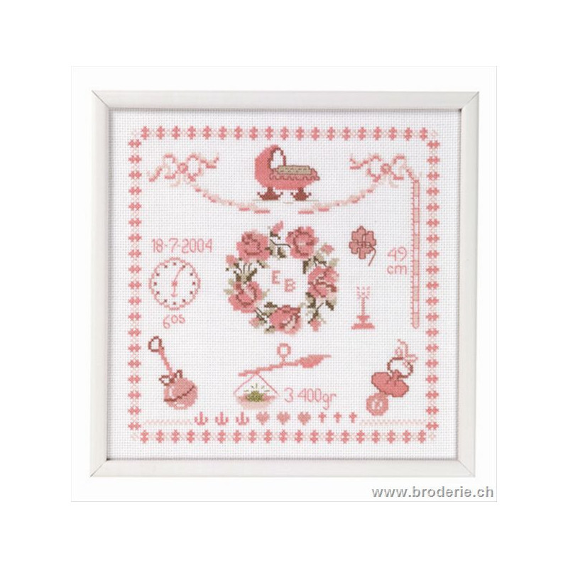 L'article 'Permin, kit naissance fille (PE39-7132)' fait partie de notre assortiment depuis le 1 mai 2008. Permin of Copenhagen est une gamme qui propose de beaux kits de broderie depuis plus de 100 ans. Une belle gamme de broderie de points de croix comptés, de nappes imprimées et de tapisseries aussi. Vous trouverez dans la collection Permin of Copenhagen beaucoup de paysages (notamment aussi en teintes sépia), des reprodutions d'anciens marquoirs et abécédaires antiques (sampler antiques), et de belles broderies d'animaux, et beaucoup de broderie pour Noël (calendriers de l'Avant, Père-Noël ). Sur le site vous avez aussi sous la rubrique minikit tous les petits kits de Noël ou autres relativement vite réalisés et aussi des kits faciles pour commencer, sur une trame Aïda 3.2 points/cm (kit facile à mettre dans la rubtique recherche. Fiche technique : merci de bien regarder ce que vous désirez, points de croix comptés (parfois les kits sont disponibles sur aïda ou lin), quelques tapisseries, nappes. Les kits prévus spécialement pour les enfants qui commencent le point de croix sont sous la rubrique "kits pour enfants- points de croix compté".