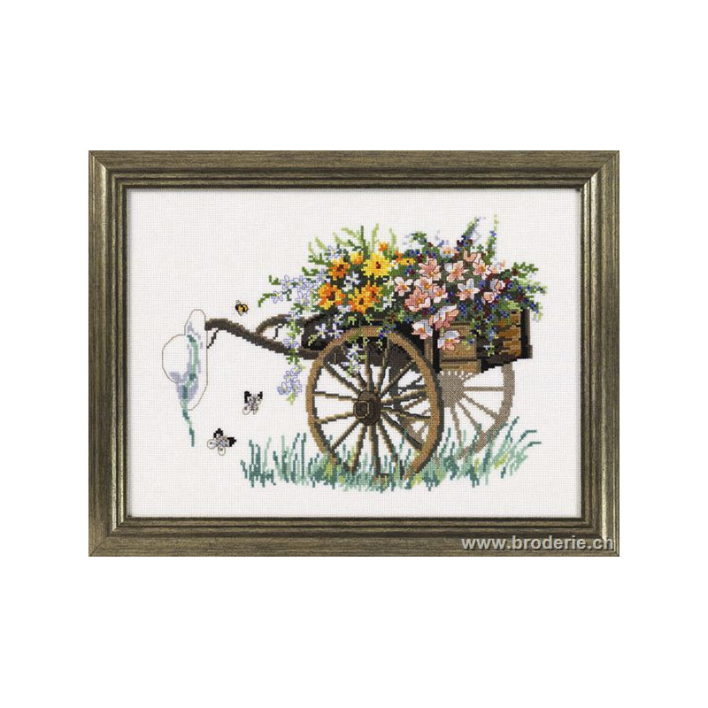 L'article 'Permin, kit charrette fleurie (PE70-3121)' fait partie de notre assortiment depuis le 1 mai 2008. Permin of Copenhagen est une gamme qui propose de beaux kits de broderie depuis plus de 100 ans. Une belle gamme de broderie de points de croix comptés, de nappes imprimées et de tapisseries aussi. Vous trouverez dans la collection Permin of Copenhagen beaucoup de paysages (notamment aussi en teintes sépia), des reprodutions d'anciens marquoirs et abécédaires antiques (sampler antiques), et de belles broderies d'animaux, et beaucoup de broderie pour Noël (calendriers de l'Avant, Père-Noël ). Sur le site vous avez aussi sous la rubrique minikit tous les petits kits de Noël ou autres relativement vite réalisés et aussi des kits faciles pour commencer, sur une trame Aïda 3.2 points/cm (kit facile à mettre dans la rubtique recherche. Fiche technique : merci de bien regarder ce que vous désirez, points de croix comptés (parfois les kits sont disponibles sur aïda ou lin), quelques tapisseries, nappes. Les kits prévus spécialement pour les enfants qui commencent le point de croix sont sous la rubrique "kits pour enfants- points de croix compté".