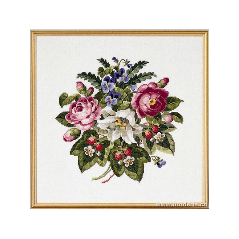 L'article 'Permin, le bouquet classique (PE70-4145)' fait partie de notre assortiment depuis le 1 mai 2008. Permin of Copenhagen est une gamme qui propose de beaux kits de broderie depuis plus de 100 ans. Une belle gamme de broderie de points de croix comptés, de nappes imprimées et de tapisseries aussi. Vous trouverez dans la collection Permin of Copenhagen beaucoup de paysages (notamment aussi en teintes sépia), des reprodutions d'anciens marquoirs et abécédaires antiques (sampler antiques), et de belles broderies d'animaux, et beaucoup de broderie pour Noël (calendriers de l'Avant, Père-Noël ). Sur le site vous avez aussi sous la rubrique minikit tous les petits kits de Noël ou autres relativement vite réalisés et aussi des kits faciles pour commencer, sur une trame Aïda 3.2 points/cm (kit facile à mettre dans la rubtique recherche. Fiche technique : merci de bien regarder ce que vous désirez, points de croix comptés (parfois les kits sont disponibles sur aïda ou lin), quelques tapisseries, nappes. Les kits prévus spécialement pour les enfants qui commencent le point de croix sont sous la rubrique "kits pour enfants- points de croix compté".