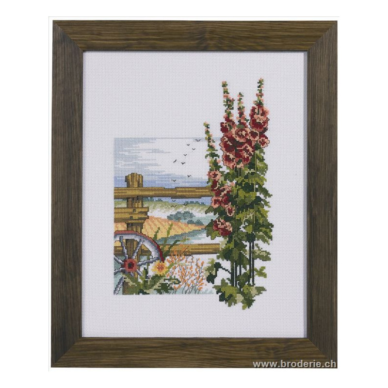 L'article 'Permin, kit Roses trémières et paysage (PE92-9323)' fait partie de notre assortiment depuis le 18 septembre 2009. Permin of Copenhagen est une gamme qui propose de beaux kits de broderie depuis plus de 100 ans. Une belle gamme de broderie de points de croix comptés, de nappes imprimées et de tapisseries aussi. Vous trouverez dans la collection Permin of Copenhagen beaucoup de paysages (notamment aussi en teintes sépia), des reprodutions d'anciens marquoirs et abécédaires antiques (sampler antiques), et de belles broderies d'animaux, et beaucoup de broderie pour Noël (calendriers de l'Avant, Père-Noël ). Sur le site vous avez aussi sous la rubrique minikit tous les petits kits de Noël ou autres relativement vite réalisés et aussi des kits faciles pour commencer, sur une trame Aïda 3.2 points/cm (kit facile à mettre dans la rubtique recherche. Fiche technique : merci de bien regarder ce que vous désirez, points de croix comptés (parfois les kits sont disponibles sur aïda ou lin), quelques tapisseries, nappes. Les kits prévus spécialement pour les enfants qui commencent le point de croix sont sous la rubrique "kits pour enfants- points de croix compté".