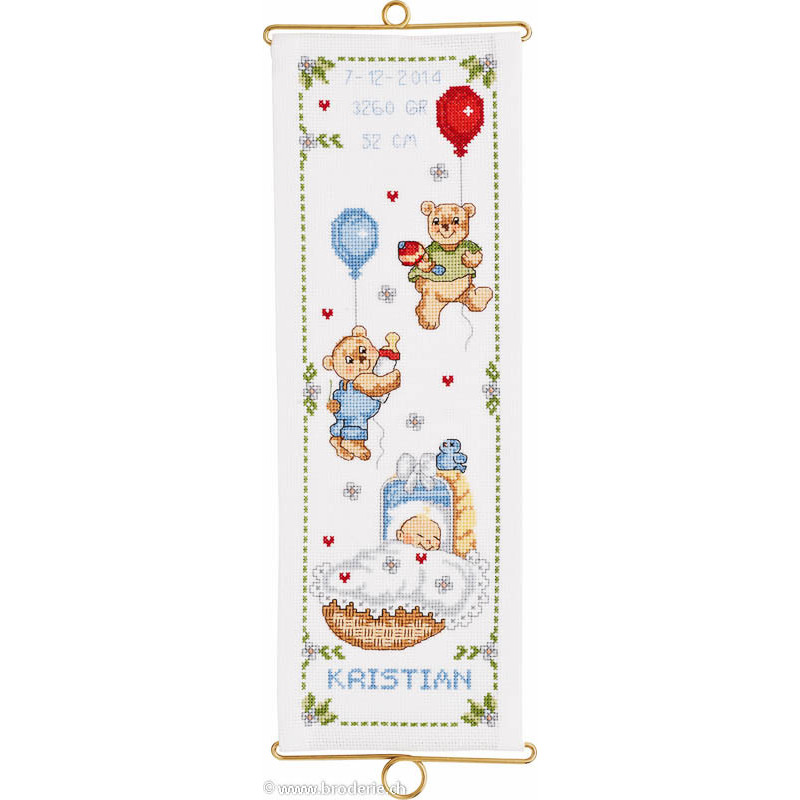 L'article 'Permin, kit naissance garçon (PE36-2346)' fait partie de notre assortiment depuis le 25 septembre 2013. Permin of Copenhagen est une gamme qui propose de beaux kits de broderie depuis plus de 100 ans. Une belle gamme de broderie de points de croix comptés, de nappes imprimées et de tapisseries aussi. Vous trouverez dans la collection Permin of Copenhagen beaucoup de paysages (notamment aussi en teintes sépia), des reprodutions d'anciens marquoirs et abécédaires antiques (sampler antiques), et de belles broderies d'animaux, et beaucoup de broderie pour Noël (calendriers de l'Avant, Père-Noël ). Sur le site vous avez aussi sous la rubrique minikit tous les petits kits de Noël ou autres relativement vite réalisés et aussi des kits faciles pour commencer, sur une trame Aïda 3.2 points/cm (kit facile à mettre dans la rubtique recherche. Fiche technique : merci de bien regarder ce que vous désirez, points de croix comptés (parfois les kits sont disponibles sur aïda ou lin), quelques tapisseries, nappes. Les kits prévus spécialement pour les enfants qui commencent le point de croix sont sous la rubrique "kits pour enfants- points de croix compté".