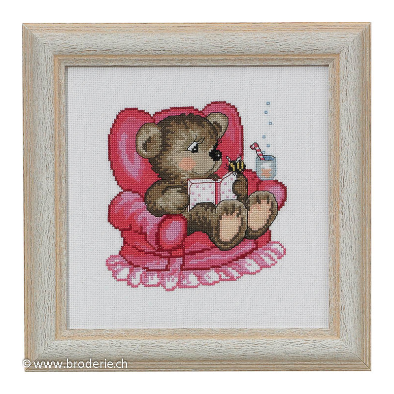 L'article 'Permin, kit ourson et la lecture (PE13-3358)' fait partie de notre assortiment depuis le 4 janvier 2014. Permin of Copenhagen est une gamme qui propose de beaux kits de broderie depuis plus de 100 ans. Une belle gamme de broderie de points de croix comptés, de nappes imprimées et de tapisseries aussi. Vous trouverez dans la collection Permin of Copenhagen beaucoup de paysages (notamment aussi en teintes sépia), des reprodutions d'anciens marquoirs et abécédaires antiques (sampler antiques), et de belles broderies d'animaux, et beaucoup de broderie pour Noël (calendriers de l'Avant, Père-Noël ). Sur le site vous avez aussi sous la rubrique minikit tous les petits kits de Noël ou autres relativement vite réalisés et aussi des kits faciles pour commencer, sur une trame Aïda 3.2 points/cm (kit facile à mettre dans la rubtique recherche. Fiche technique : merci de bien regarder ce que vous désirez, points de croix comptés (parfois les kits sont disponibles sur aïda ou lin), quelques tapisseries, nappes. Les kits prévus spécialement pour les enfants qui commencent le point de croix sont sous la rubrique "kits pour enfants- points de croix compté".