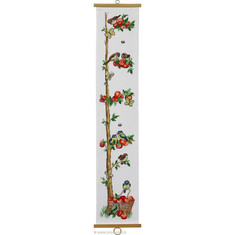 L'article 'Permin, kit cordon de sonnette pommier et oiseaux (PE35-4119)' fait partie de notre assortiment depuis le 9 mai 2014. Permin of Copenhagen est une gamme qui propose de beaux kits de broderie depuis plus de 100 ans. Une belle gamme de broderie de points de croix comptés, de nappes imprimées et de tapisseries aussi. Vous trouverez dans la collection Permin of Copenhagen beaucoup de paysages (notamment aussi en teintes sépia), des reprodutions d'anciens marquoirs et abécédaires antiques (sampler antiques), et de belles broderies d'animaux, et beaucoup de broderie pour Noël (calendriers de l'Avant, Père-Noël ). Sur le site vous avez aussi sous la rubrique minikit tous les petits kits de Noël ou autres relativement vite réalisés et aussi des kits faciles pour commencer, sur une trame Aïda 3.2 points/cm (kit facile à mettre dans la rubtique recherche. Fiche technique : merci de bien regarder ce que vous désirez, points de croix comptés (parfois les kits sont disponibles sur aïda ou lin), quelques tapisseries, nappes. Les kits prévus spécialement pour les enfants qui commencent le point de croix sont sous la rubrique "kits pour enfants- points de croix compté".