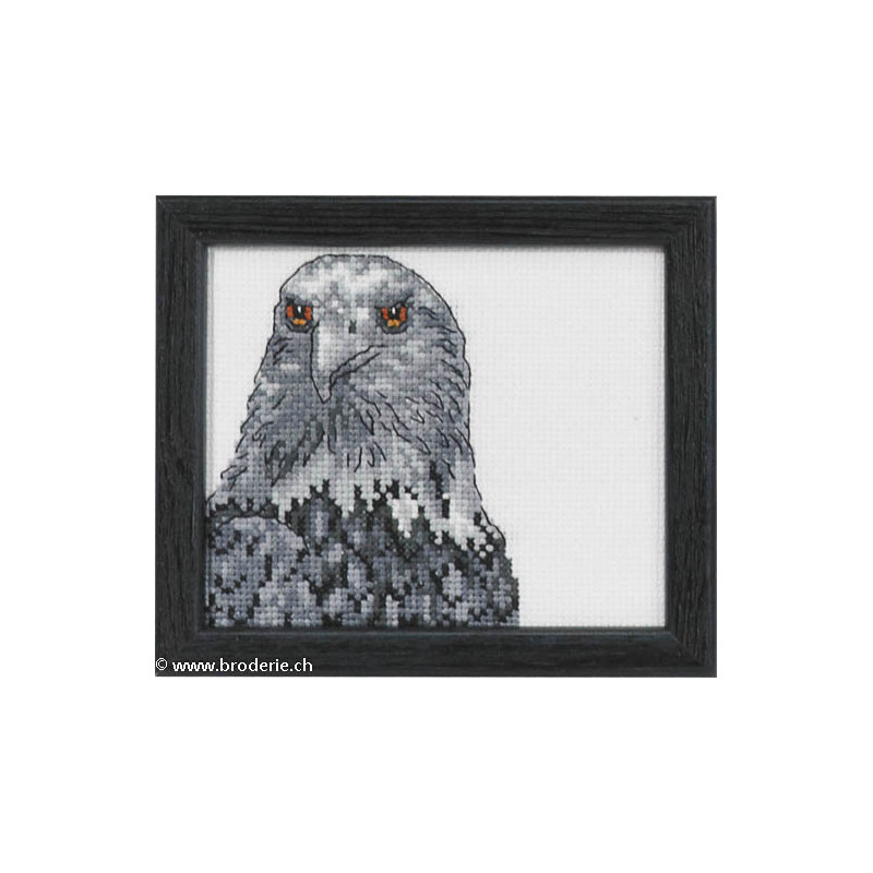 L'article 'Permin, kit tête d'aigle (PE14-4134)' fait partie de notre assortiment depuis le 9 mai 2014. Permin of Copenhagen est une gamme qui propose de beaux kits de broderie depuis plus de 100 ans. Une belle gamme de broderie de points de croix comptés, de nappes imprimées et de tapisseries aussi. Vous trouverez dans la collection Permin of Copenhagen beaucoup de paysages (notamment aussi en teintes sépia), des reprodutions d'anciens marquoirs et abécédaires antiques (sampler antiques), et de belles broderies d'animaux, et beaucoup de broderie pour Noël (calendriers de l'Avant, Père-Noël ). Sur le site vous avez aussi sous la rubrique minikit tous les petits kits de Noël ou autres relativement vite réalisés et aussi des kits faciles pour commencer, sur une trame Aïda 3.2 points/cm (kit facile à mettre dans la rubtique recherche. Fiche technique : merci de bien regarder ce que vous désirez, points de croix comptés (parfois les kits sont disponibles sur aïda ou lin), quelques tapisseries, nappes. Les kits prévus spécialement pour les enfants qui commencent le point de croix sont sous la rubrique "kits pour enfants- points de croix compté".