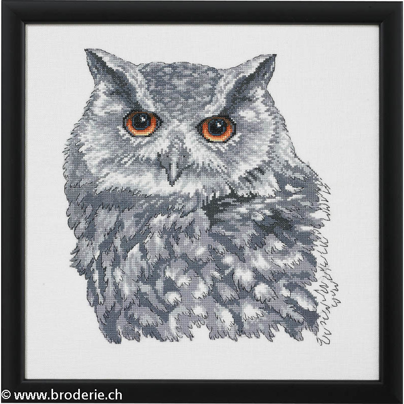 L'article 'Permin, kit Tête de hibou (PE70-4112)' fait partie de notre assortiment depuis le 9 mai 2014. Permin of Copenhagen est une gamme qui propose de beaux kits de broderie depuis plus de 100 ans. Une belle gamme de broderie de points de croix comptés, de nappes imprimées et de tapisseries aussi. Vous trouverez dans la collection Permin of Copenhagen beaucoup de paysages (notamment aussi en teintes sépia), des reprodutions d'anciens marquoirs et abécédaires antiques (sampler antiques), et de belles broderies d'animaux, et beaucoup de broderie pour Noël (calendriers de l'Avant, Père-Noël ). Sur le site vous avez aussi sous la rubrique minikit tous les petits kits de Noël ou autres relativement vite réalisés et aussi des kits faciles pour commencer, sur une trame Aïda 3.2 points/cm (kit facile à mettre dans la rubtique recherche. Fiche technique : merci de bien regarder ce que vous désirez, points de croix comptés (parfois les kits sont disponibles sur aïda ou lin), quelques tapisseries, nappes. Les kits prévus spécialement pour les enfants qui commencent le point de croix sont sous la rubrique "kits pour enfants- points de croix compté".
