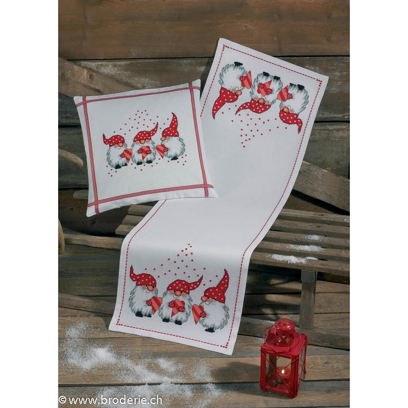 L'article 'Permin, kit chemin de table Lutins (PE68-4257)' fait partie de notre assortiment depuis le 23 août 2014. Permin of Copenhagen est une gamme qui propose de beaux kits de broderie depuis plus de 100 ans. Une belle gamme de broderie de points de croix comptés, de nappes imprimées et de tapisseries aussi. Vous trouverez dans la collection Permin of Copenhagen beaucoup de paysages (notamment aussi en teintes sépia), des reprodutions d'anciens marquoirs et abécédaires antiques (sampler antiques), et de belles broderies d'animaux, et beaucoup de broderie pour Noël (calendriers de l'Avant, Père-Noël ). Sur le site vous avez aussi sous la rubrique minikit tous les petits kits de Noël ou autres relativement vite réalisés et aussi des kits faciles pour commencer, sur une trame Aïda 3.2 points/cm (kit facile à mettre dans la rubtique recherche. Fiche technique : merci de bien regarder ce que vous désirez, points de croix comptés (parfois les kits sont disponibles sur aïda ou lin), quelques tapisseries, nappes. Les kits prévus spécialement pour les enfants qui commencent le point de croix sont sous la rubrique "kits pour enfants- points de croix compté".