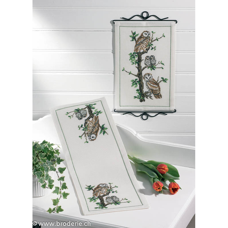 L'article 'Permin, kit Famille chouettes (PE70-4749)' fait partie de notre assortiment depuis le 25 octobre 2014. Permin of Copenhagen est une gamme qui propose de beaux kits de broderie depuis plus de 100 ans. Une belle gamme de broderie de points de croix comptés, de nappes imprimées et de tapisseries aussi. Vous trouverez dans la collection Permin of Copenhagen beaucoup de paysages (notamment aussi en teintes sépia), des reprodutions d'anciens marquoirs et abécédaires antiques (sampler antiques), et de belles broderies d'animaux, et beaucoup de broderie pour Noël (calendriers de l'Avant, Père-Noël ). Sur le site vous avez aussi sous la rubrique minikit tous les petits kits de Noël ou autres relativement vite réalisés et aussi des kits faciles pour commencer, sur une trame Aïda 3.2 points/cm (kit facile à mettre dans la rubtique recherche. Fiche technique : merci de bien regarder ce que vous désirez, points de croix comptés (parfois les kits sont disponibles sur aïda ou lin), quelques tapisseries, nappes. Les kits prévus spécialement pour les enfants qui commencent le point de croix sont sous la rubrique "kits pour enfants- points de croix compté".
