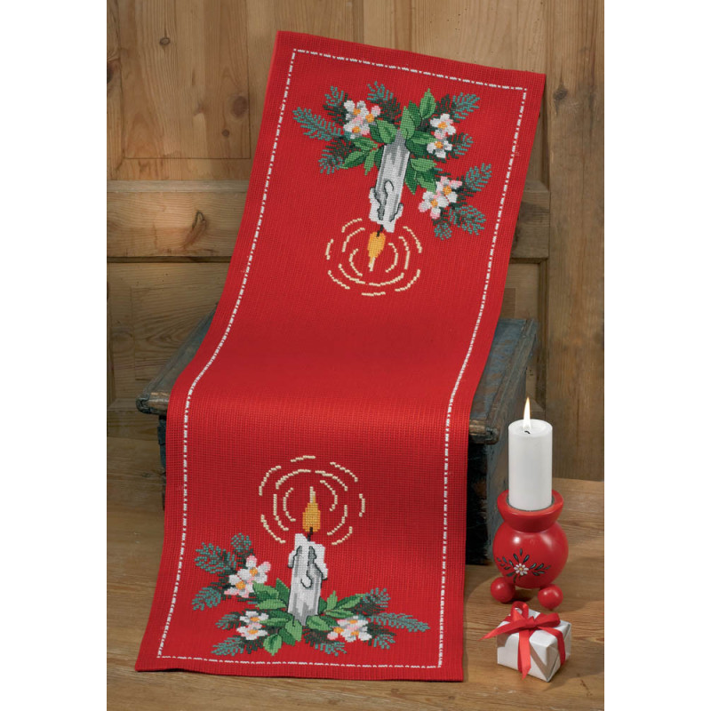 L'article 'Permin, kit chemin de table Bougie (PE68-5298)' fait partie de notre assortiment depuis le 27 août 2015. Permin of Copenhagen est une gamme qui propose de beaux kits de broderie depuis plus de 100 ans. Une belle gamme de broderie de points de croix comptés, de nappes imprimées et de tapisseries aussi. Vous trouverez dans la collection Permin of Copenhagen beaucoup de paysages (notamment aussi en teintes sépia), des reprodutions d'anciens marquoirs et abécédaires antiques (sampler antiques), et de belles broderies d'animaux, et beaucoup de broderie pour Noël (calendriers de l'Avant, Père-Noël ). Sur le site vous avez aussi sous la rubrique minikit tous les petits kits de Noël ou autres relativement vite réalisés et aussi des kits faciles pour commencer, sur une trame Aïda 3.2 points/cm (kit facile à mettre dans la rubtique recherche. Fiche technique : merci de bien regarder ce que vous désirez, points de croix comptés (parfois les kits sont disponibles sur aïda ou lin), quelques tapisseries, nappes. Les kits prévus spécialement pour les enfants qui commencent le point de croix sont sous la rubrique "kits pour enfants- points de croix compté".
