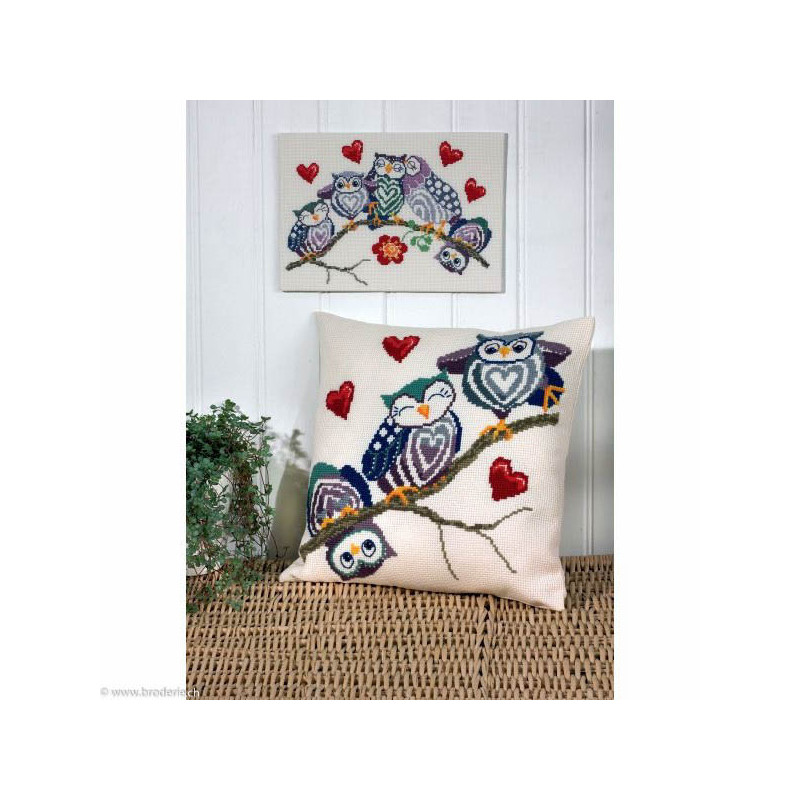 L'article 'Permin, kit facile chouettes amoureuses (PE83-4864)' fait partie de notre assortiment depuis le 10 mars 2016. Permin of Copenhagen est une gamme qui propose de beaux kits de broderie depuis plus de 100 ans. Une belle gamme de broderie de points de croix comptés, de nappes imprimées et de tapisseries aussi. Vous trouverez dans la collection Permin of Copenhagen beaucoup de paysages (notamment aussi en teintes sépia), des reprodutions d'anciens marquoirs et abécédaires antiques (sampler antiques), et de belles broderies d'animaux, et beaucoup de broderie pour Noël (calendriers de l'Avant, Père-Noël ). Sur le site vous avez aussi sous la rubrique minikit tous les petits kits de Noël ou autres relativement vite réalisés et aussi des kits faciles pour commencer, sur une trame Aïda 3.2 points/cm (kit facile à mettre dans la rubtique recherche. Fiche technique : merci de bien regarder ce que vous désirez, points de croix comptés (parfois les kits sont disponibles sur aïda ou lin), quelques tapisseries, nappes. Les kits prévus spécialement pour les enfants qui commencent le point de croix sont sous la rubrique "kits pour enfants- points de croix compté".