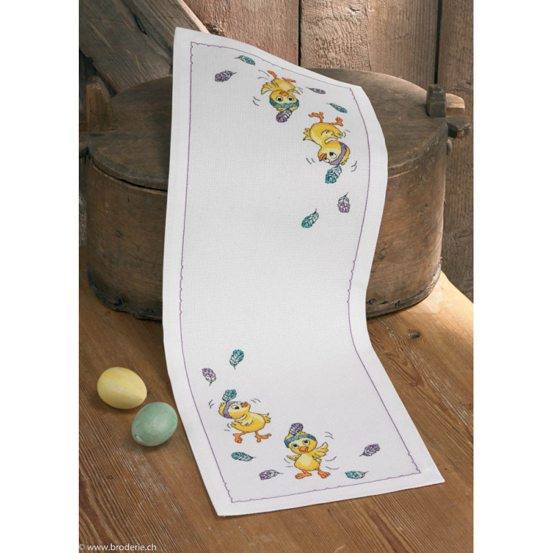 L'article 'Permin, kit chemin de table Pâques (PE63-6821)' fait partie de notre assortiment depuis le 25 février 2017. Permin of Copenhagen est une gamme qui propose de beaux kits de broderie depuis plus de 100 ans. Une belle gamme de broderie de points de croix comptés, de nappes imprimées et de tapisseries aussi. Vous trouverez dans la collection Permin of Copenhagen beaucoup de paysages (notamment aussi en teintes sépia), des reprodutions d'anciens marquoirs et abécédaires antiques (sampler antiques), et de belles broderies d'animaux, et beaucoup de broderie pour Noël (calendriers de l'Avant, Père-Noël ). Sur le site vous avez aussi sous la rubrique minikit tous les petits kits de Noël ou autres relativement vite réalisés et aussi des kits faciles pour commencer, sur une trame Aïda 3.2 points/cm (kit facile à mettre dans la rubtique recherche. Fiche technique : merci de bien regarder ce que vous désirez, points de croix comptés (parfois les kits sont disponibles sur aïda ou lin), quelques tapisseries, nappes. Les kits prévus spécialement pour les enfants qui commencent le point de croix sont sous la rubrique "kits pour enfants- points de croix compté".