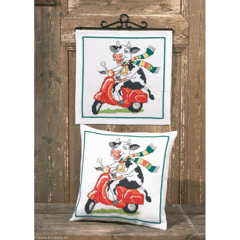L'article 'Permin, kit facile Vache en vespa (PE70-6845)' fait partie de notre assortiment depuis le 26 février 2017. Permin of Copenhagen est une gamme qui propose de beaux kits de broderie depuis plus de 100 ans. Une belle gamme de broderie de points de croix comptés, de nappes imprimées et de tapisseries aussi. Vous trouverez dans la collection Permin of Copenhagen beaucoup de paysages (notamment aussi en teintes sépia), des reprodutions d'anciens marquoirs et abécédaires antiques (sampler antiques), et de belles broderies d'animaux, et beaucoup de broderie pour Noël (calendriers de l'Avant, Père-Noël ). Sur le site vous avez aussi sous la rubrique minikit tous les petits kits de Noël ou autres relativement vite réalisés et aussi des kits faciles pour commencer, sur une trame Aïda 3.2 points/cm (kit facile à mettre dans la rubtique recherche. Fiche technique : merci de bien regarder ce que vous désirez, points de croix comptés (parfois les kits sont disponibles sur aïda ou lin), quelques tapisseries, nappes. Les kits prévus spécialement pour les enfants qui commencent le point de croix sont sous la rubrique "kits pour enfants- points de croix compté".