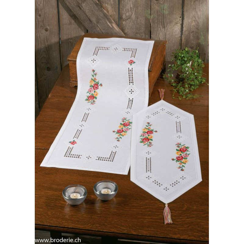 L'article 'Permin, kit Hardanger chemin de table roses (PE75-7872)' fait partie de notre assortiment depuis le 17 février 2018. Permin of Copenhagen est une gamme qui propose de beaux kits de broderie depuis plus de 100 ans. Une belle gamme de broderie de points de croix comptés, de nappes imprimées et de tapisseries aussi. Vous trouverez dans la collection Permin of Copenhagen beaucoup de paysages (notamment aussi en teintes sépia), des reprodutions d'anciens marquoirs et abécédaires antiques (sampler antiques), et de belles broderies d'animaux, et beaucoup de broderie pour Noël (calendriers de l'Avant, Père-Noël ). Sur le site vous avez aussi sous la rubrique minikit tous les petits kits de Noël ou autres relativement vite réalisés et aussi des kits faciles pour commencer, sur une trame Aïda 3.2 points/cm (kit facile à mettre dans la rubtique recherche. Fiche technique : merci de bien regarder ce que vous désirez, points de croix comptés (parfois les kits sont disponibles sur aïda ou lin), quelques tapisseries, nappes. Les kits prévus spécialement pour les enfants qui commencent le point de croix sont sous la rubrique "kits pour enfants- points de croix compté".