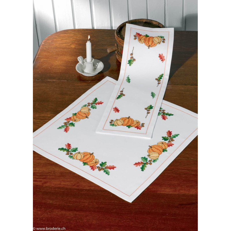 L'article 'Permin, kit facile nappe Courges (PE27-8793)' fait partie de notre assortiment depuis le 3 janvier 2019. Permin of Copenhagen est une gamme qui propose de beaux kits de broderie depuis plus de 100 ans. Une belle gamme de broderie de points de croix comptés, de nappes imprimées et de tapisseries aussi. Vous trouverez dans la collection Permin of Copenhagen beaucoup de paysages (notamment aussi en teintes sépia), des reprodutions d'anciens marquoirs et abécédaires antiques (sampler antiques), et de belles broderies d'animaux, et beaucoup de broderie pour Noël (calendriers de l'Avant, Père-Noël ). Sur le site vous avez aussi sous la rubrique minikit tous les petits kits de Noël ou autres relativement vite réalisés et aussi des kits faciles pour commencer, sur une trame Aïda 3.2 points/cm (kit facile à mettre dans la rubtique recherche. Fiche technique : merci de bien regarder ce que vous désirez, points de croix comptés (parfois les kits sont disponibles sur aïda ou lin), quelques tapisseries, nappes. Les kits prévus spécialement pour les enfants qui commencent le point de croix sont sous la rubrique "kits pour enfants- points de croix compté".
