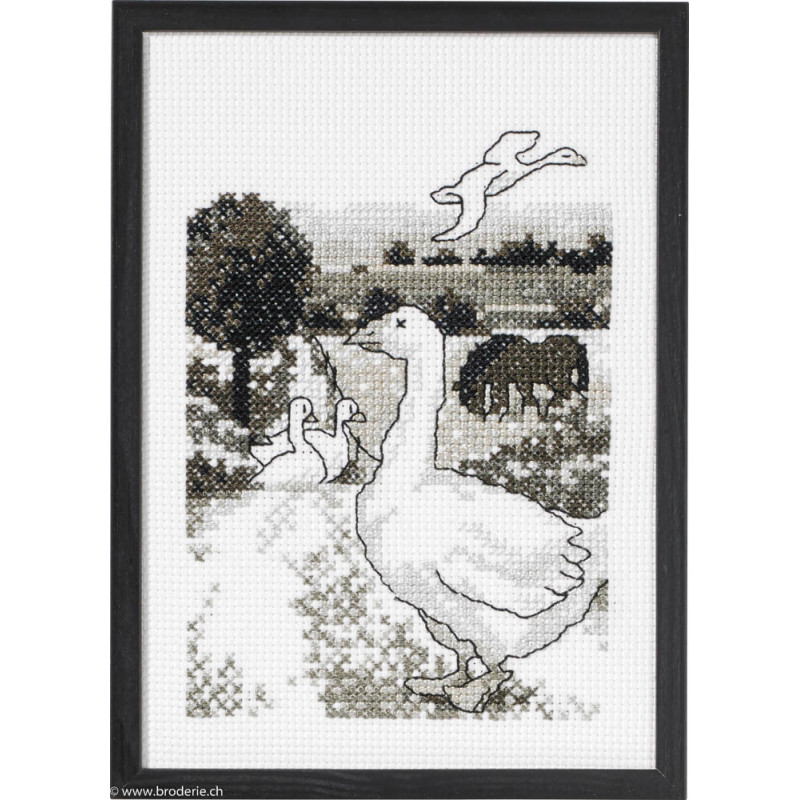 L'article 'Permin, kit facile Oie (PE92-0732)' fait partie de notre assortiment depuis le 20 février 2021. Permin of Copenhagen est une gamme qui propose de beaux kits de broderie depuis plus de 100 ans. Une belle gamme de broderie de points de croix comptés, de nappes imprimées et de tapisseries aussi. Vous trouverez dans la collection Permin of Copenhagen beaucoup de paysages (notamment aussi en teintes sépia), des reprodutions d'anciens marquoirs et abécédaires antiques (sampler antiques), et de belles broderies d'animaux, et beaucoup de broderie pour Noël (calendriers de l'Avant, Père-Noël ). Sur le site vous avez aussi sous la rubrique minikit tous les petits kits de Noël ou autres relativement vite réalisés et aussi des kits faciles pour commencer, sur une trame Aïda 3.2 points/cm (kit facile à mettre dans la rubtique recherche. Fiche technique : merci de bien regarder ce que vous désirez, points de croix comptés (parfois les kits sont disponibles sur aïda ou lin), quelques tapisseries, nappes. Les kits prévus spécialement pour les enfants qui commencent le point de croix sont sous la rubrique "kits pour enfants- points de croix compté".