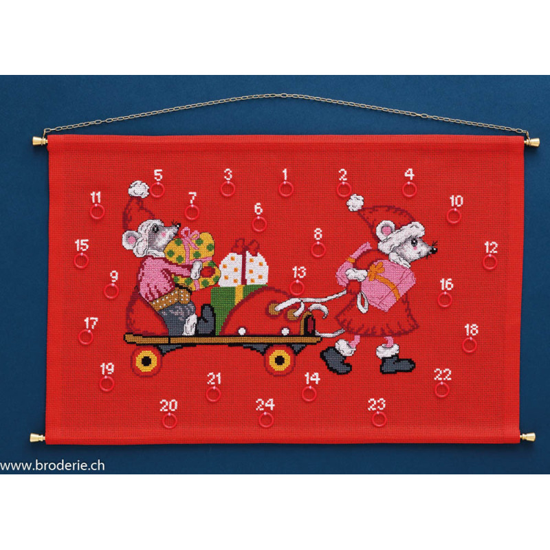 L'article 'Permin, kit Calendrier de l'Avent Souris et planche a roulette (PE34-3284)' fait partie de notre assortiment depuis le 26 juin 2023. Permin of Copenhagen est une gamme qui propose de beaux kits de broderie depuis plus de 100 ans. Une belle gamme de broderie de points de croix comptés, de nappes imprimées et de tapisseries aussi. Vous trouverez dans la collection Permin of Copenhagen beaucoup de paysages (notamment aussi en teintes sépia), des reprodutions d'anciens marquoirs et abécédaires antiques (sampler antiques), et de belles broderies d'animaux, et beaucoup de broderie pour Noël (calendriers de l'Avant, Père-Noël ). Sur le site vous avez aussi sous la rubrique minikit tous les petits kits de Noël ou autres relativement vite réalisés et aussi des kits faciles pour commencer, sur une trame Aïda 3.2 points/cm (kit facile à mettre dans la rubtique recherche. Fiche technique : merci de bien regarder ce que vous désirez, points de croix comptés (parfois les kits sont disponibles sur aïda ou lin), quelques tapisseries, nappes. Les kits prévus spécialement pour les enfants qui commencent le point de croix sont sous la rubrique "kits pour enfants- points de croix compté".