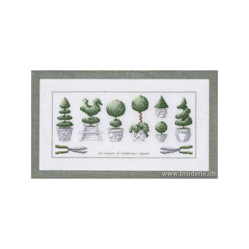 L'article 'Permin, kit "arbustes taillés" (PE70-8431)' fait partie de notre assortiment depuis le 19 janvier 2002. Permin of Copenhagen est une gamme qui propose de beaux kits de broderie depuis plus de 100 ans. Une belle gamme de broderie de points de croix comptés, de nappes imprimées et de tapisseries aussi. Vous trouverez dans la collection Permin of Copenhagen beaucoup de paysages (notamment aussi en teintes sépia), des reprodutions d'anciens marquoirs et abécédaires antiques (sampler antiques), et de belles broderies d'animaux, et beaucoup de broderie pour Noël (calendriers de l'Avant, Père-Noël ). Sur le site vous avez aussi sous la rubrique minikit tous les petits kits de Noël ou autres relativement vite réalisés et aussi des kits faciles pour commencer, sur une trame Aïda 3.2 points/cm (kit facile à mettre dans la rubtique recherche. Fiche technique : merci de bien regarder ce que vous désirez, points de croix comptés (parfois les kits sont disponibles sur aïda ou lin), quelques tapisseries, nappes. Les kits prévus spécialement pour les enfants qui commencent le point de croix sont sous la rubrique "kits pour enfants- points de croix compté".