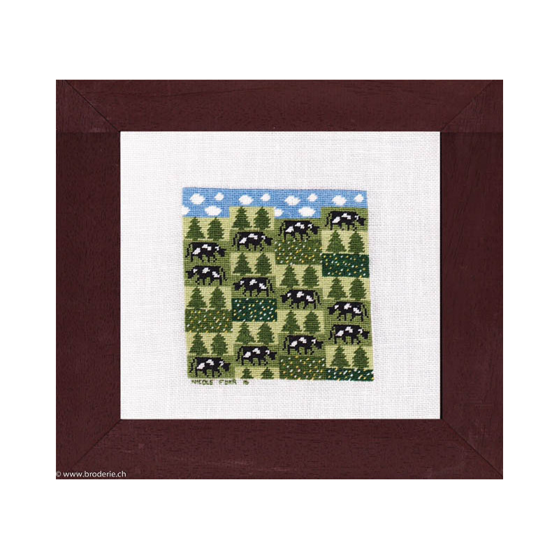 L'article 'Points Com, grille Les vaches se mettent au vert (PCO2100)' fait partie de notre assortiment depuis le 16 janvier 2017. Points Com est une très jolie gamme de modèles de points de croix comptés, nouvellement visible sur les site internet. Sa créatrice Nicole Fuhr est genevoise et crée depuis quelques années des motifs sympas, notamment de nouveaux modèles de poyas, thème toujours très demandés.