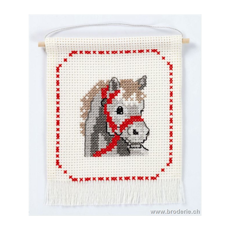L'article 'Permin, kit enfant tête de cheval (PE13-3392)' fait partie de notre assortiment depuis le 1 mai 2008. Permin of Copenhagen est une gamme qui propose de beaux kits de broderie depuis plus de 100 ans. Une belle gamme de broderie de points de croix comptés, de nappes imprimées et de tapisseries aussi. Vous trouverez dans la collection Permin of Copenhagen beaucoup de paysages (notamment aussi en teintes sépia), des reprodutions d'anciens marquoirs et abécédaires antiques (sampler antiques), et de belles broderies d'animaux, et beaucoup de broderie pour Noël (calendriers de l'Avant, Père-Noël ). Sur le site vous avez aussi sous la rubrique minikit tous les petits kits de Noël ou autres relativement vite réalisés et aussi des kits faciles pour commencer, sur une trame Aïda 3.2 points/cm (kit facile à mettre dans la rubtique recherche. Fiche technique : merci de bien regarder ce que vous désirez, points de croix comptés (parfois les kits sont disponibles sur aïda ou lin), quelques tapisseries, nappes. Les kits prévus spécialement pour les enfants qui commencent le point de croix sont sous la rubrique "kits pour enfants- points de croix compté".