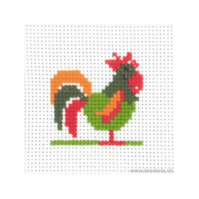 L'article 'Permin, mini-kit enfant coq (PE14-8331)' fait partie de notre assortiment depuis le 8 mai 2009. Permin of Copenhagen est une gamme qui propose de beaux kits de broderie depuis plus de 100 ans. Une belle gamme de broderie de points de croix comptés, de nappes imprimées et de tapisseries aussi. Vous trouverez dans la collection Permin of Copenhagen beaucoup de paysages (notamment aussi en teintes sépia), des reprodutions d'anciens marquoirs et abécédaires antiques (sampler antiques), et de belles broderies d'animaux, et beaucoup de broderie pour Noël (calendriers de l'Avant, Père-Noël ). Sur le site vous avez aussi sous la rubrique minikit tous les petits kits de Noël ou autres relativement vite réalisés et aussi des kits faciles pour commencer, sur une trame Aïda 3.2 points/cm (kit facile à mettre dans la rubtique recherche. Fiche technique : merci de bien regarder ce que vous désirez, points de croix comptés (parfois les kits sont disponibles sur aïda ou lin), quelques tapisseries, nappes. Les kits prévus spécialement pour les enfants qui commencent le point de croix sont sous la rubrique "kits pour enfants- points de croix compté".