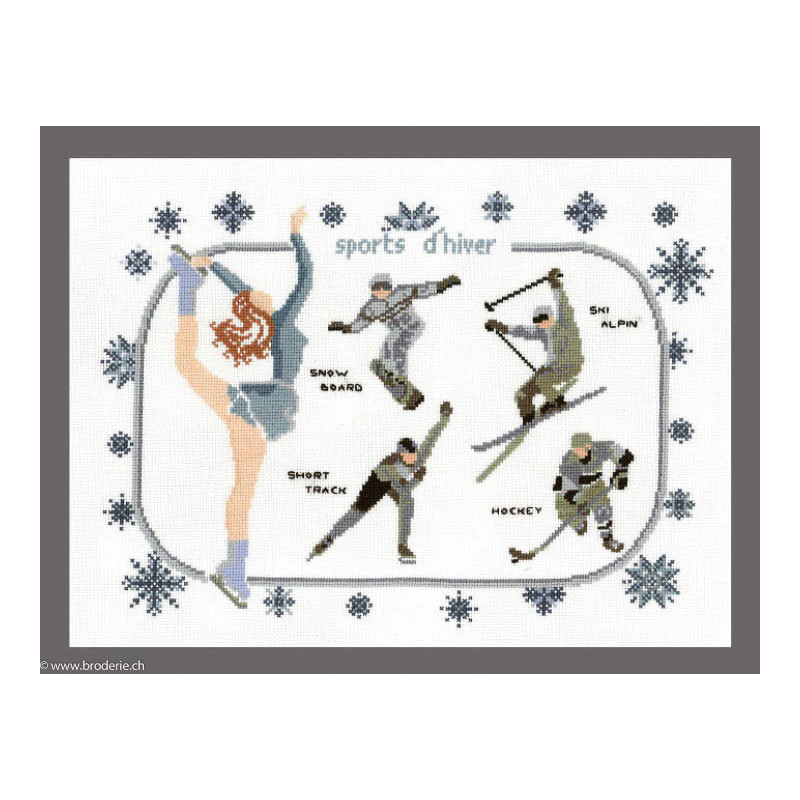 L'article 'Princesse, kit Sports d'hiver (PR7401A)' fait partie de notre assortiment depuis le 3 décembre 2015. La gamme Princesse est une gamme de kits de broderie, et vous trouvez ici les kits de points de croix comptéx qui ne présentent pas de difficulté particulière. Très souvent vous avez le choix entre une trame classique et une trame colorée, avec un fond ou est imprimé une partie du motif ou des notes ou des flocons par exemple , et une seule partie du dessin est à broder. Dans la rubrique broderie traditionnele - tableaux, coussins et divers vous trouverez les kits de Princesse ou le dessin à broder est imprimé, soit des croix ou d'autres points.