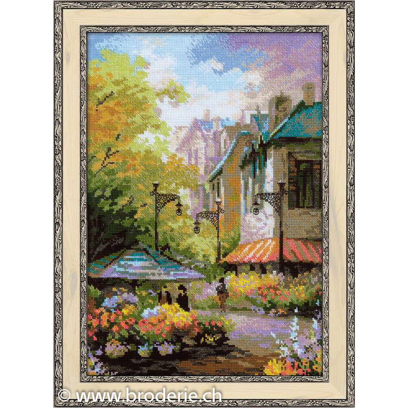 L'article 'Riolis, kit Flower Street (RI1306)' fait partie de notre assortiment depuis le 13 février 2013. La gamme Riolis nous vient de Lituanie et propose une grande diversité de kits de points de croix comptés : paysages, animaux, saisons, modèles modernes et rétros, kits faciles et avec perles, reproduction de tableaux de maîtres. Sa particularité est essentiellement d'utiliser pour la plupart de ses kits de la laine très fine, idéale pour donner un aspect soyeux à la broderie. Pensez à bien regarder dans "plus de détails" du kit qui vous intéresse si le kit est avec laine ou mouliné. Tous les kits sont livrés avec de l'aïda 5,5 points/cm (Aïda 14) ou plus large (marqué aïda 10). il est cependant facile changer de trame, sauf pour les quelques kits ou l'aïda est imprimé par un dessin dans le fonds (références commençant par RIPT). Les kits mentionnés comme "facile" le sont car ils sont brodés sur de l'aïda 4.5 points/cm, mais ne sont pas conseillés pour un premier ouvrage d'enfant, car la plupart sont livrés avec de la lainev :-) Explication en russe et en anglais