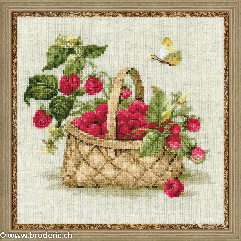 L'article 'Riolis, kit Basket with Raspberries (RI1448)' fait partie de notre assortiment depuis le 22 octobre 2014. La gamme Riolis nous vient de Lituanie et propose une grande diversité de kits de points de croix comptés : paysages, animaux, saisons, modèles modernes et rétros, kits faciles et avec perles, reproduction de tableaux de maîtres. Sa particularité est essentiellement d'utiliser pour la plupart de ses kits de la laine très fine, idéale pour donner un aspect soyeux à la broderie. Pensez à bien regarder dans "plus de détails" du kit qui vous intéresse si le kit est avec laine ou mouliné. Tous les kits sont livrés avec de l'aïda 5,5 points/cm (Aïda 14) ou plus large (marqué aïda 10). il est cependant facile changer de trame, sauf pour les quelques kits ou l'aïda est imprimé par un dessin dans le fonds (références commençant par RIPT). Les kits mentionnés comme "facile" le sont car ils sont brodés sur de l'aïda 4.5 points/cm, mais ne sont pas conseillés pour un premier ouvrage d'enfant, car la plupart sont livrés avec de la lainev :-) Explication en russe et en anglais