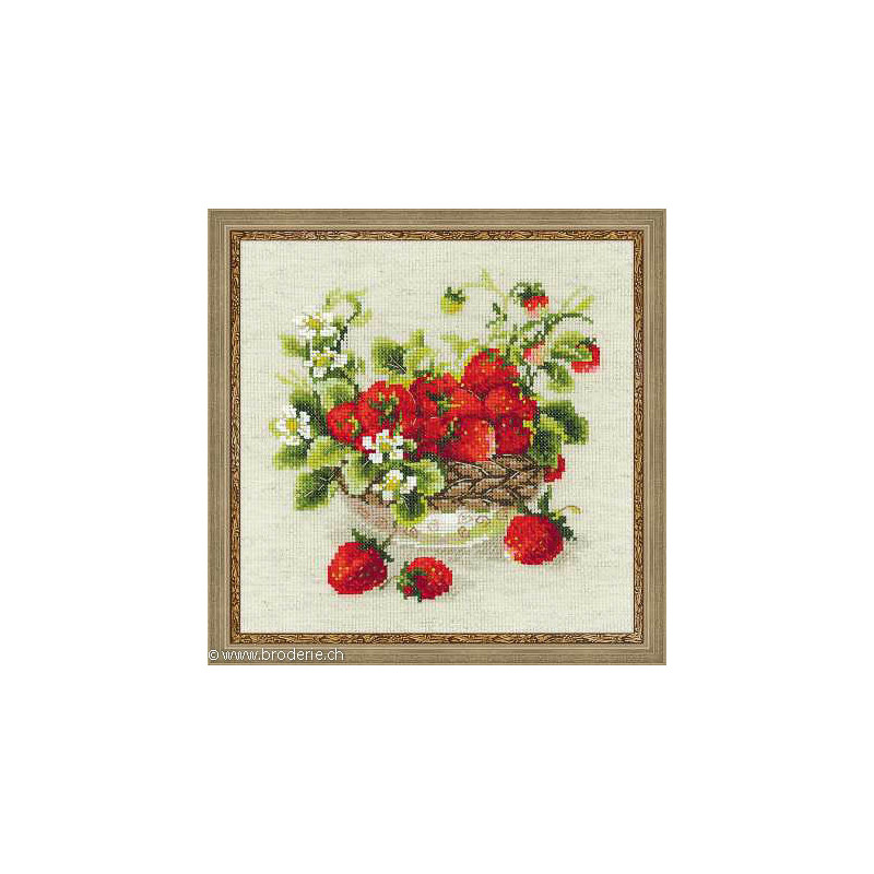 L'article 'Riolis, kit Garden Strawberry (RI1449)' fait partie de notre assortiment depuis le 22 octobre 2014. La gamme Riolis nous vient de Lituanie et propose une grande diversité de kits de points de croix comptés : paysages, animaux, saisons, modèles modernes et rétros, kits faciles et avec perles, reproduction de tableaux de maîtres. Sa particularité est essentiellement d'utiliser pour la plupart de ses kits de la laine très fine, idéale pour donner un aspect soyeux à la broderie. Pensez à bien regarder dans "plus de détails" du kit qui vous intéresse si le kit est avec laine ou mouliné. Tous les kits sont livrés avec de l'aïda 5,5 points/cm (Aïda 14) ou plus large (marqué aïda 10). il est cependant facile changer de trame, sauf pour les quelques kits ou l'aïda est imprimé par un dessin dans le fonds (références commençant par RIPT). Les kits mentionnés comme "facile" le sont car ils sont brodés sur de l'aïda 4.5 points/cm, mais ne sont pas conseillés pour un premier ouvrage d'enfant, car la plupart sont livrés avec de la lainev :-) Explication en russe et en anglais