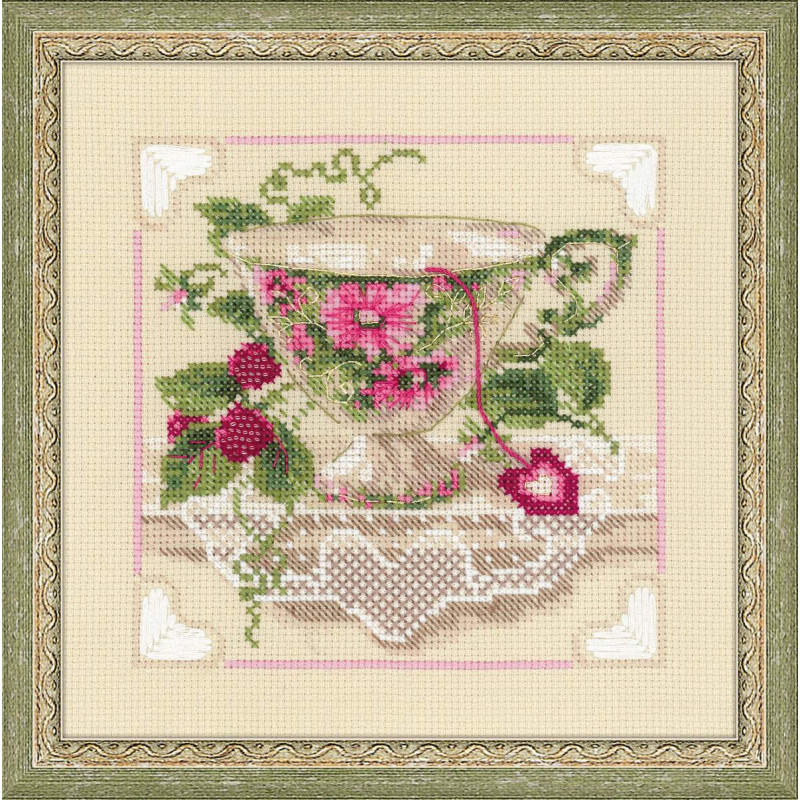 L'article 'Riolis, kit Rasberry Tea (RI1476)' fait partie de notre assortiment depuis le 17 juillet 2015. La gamme Riolis nous vient de Lituanie et propose une grande diversité de kits de points de croix comptés : paysages, animaux, saisons, modèles modernes et rétros, kits faciles et avec perles, reproduction de tableaux de maîtres. Sa particularité est essentiellement d'utiliser pour la plupart de ses kits de la laine très fine, idéale pour donner un aspect soyeux à la broderie. Pensez à bien regarder dans "plus de détails" du kit qui vous intéresse si le kit est avec laine ou mouliné. Tous les kits sont livrés avec de l'aïda 5,5 points/cm (Aïda 14) ou plus large (marqué aïda 10). il est cependant facile changer de trame, sauf pour les quelques kits ou l'aïda est imprimé par un dessin dans le fonds (références commençant par RIPT). Les kits mentionnés comme "facile" le sont car ils sont brodés sur de l'aïda 4.5 points/cm, mais ne sont pas conseillés pour un premier ouvrage d'enfant, car la plupart sont livrés avec de la lainev :-) Explication en russe et en anglais