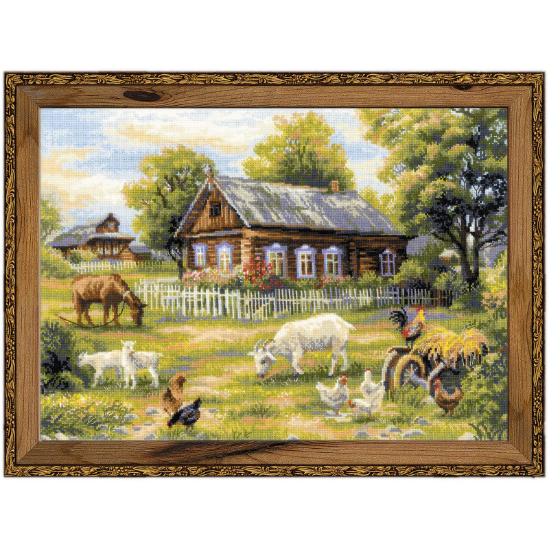 L'article 'Riolis, kit Afternoon in the country (RI1501)' fait partie de notre assortiment depuis le 17 juillet 2015. La gamme Riolis nous vient de Lituanie et propose une grande diversité de kits de points de croix comptés : paysages, animaux, saisons, modèles modernes et rétros, kits faciles et avec perles, reproduction de tableaux de maîtres. Sa particularité est essentiellement d'utiliser pour la plupart de ses kits de la laine très fine, idéale pour donner un aspect soyeux à la broderie. Pensez à bien regarder dans "plus de détails" du kit qui vous intéresse si le kit est avec laine ou mouliné. Tous les kits sont livrés avec de l'aïda 5,5 points/cm (Aïda 14) ou plus large (marqué aïda 10). il est cependant facile changer de trame, sauf pour les quelques kits ou l'aïda est imprimé par un dessin dans le fonds (références commençant par RIPT). Les kits mentionnés comme "facile" le sont car ils sont brodés sur de l'aïda 4.5 points/cm, mais ne sont pas conseillés pour un premier ouvrage d'enfant, car la plupart sont livrés avec de la lainev :-) Explication en russe et en anglais