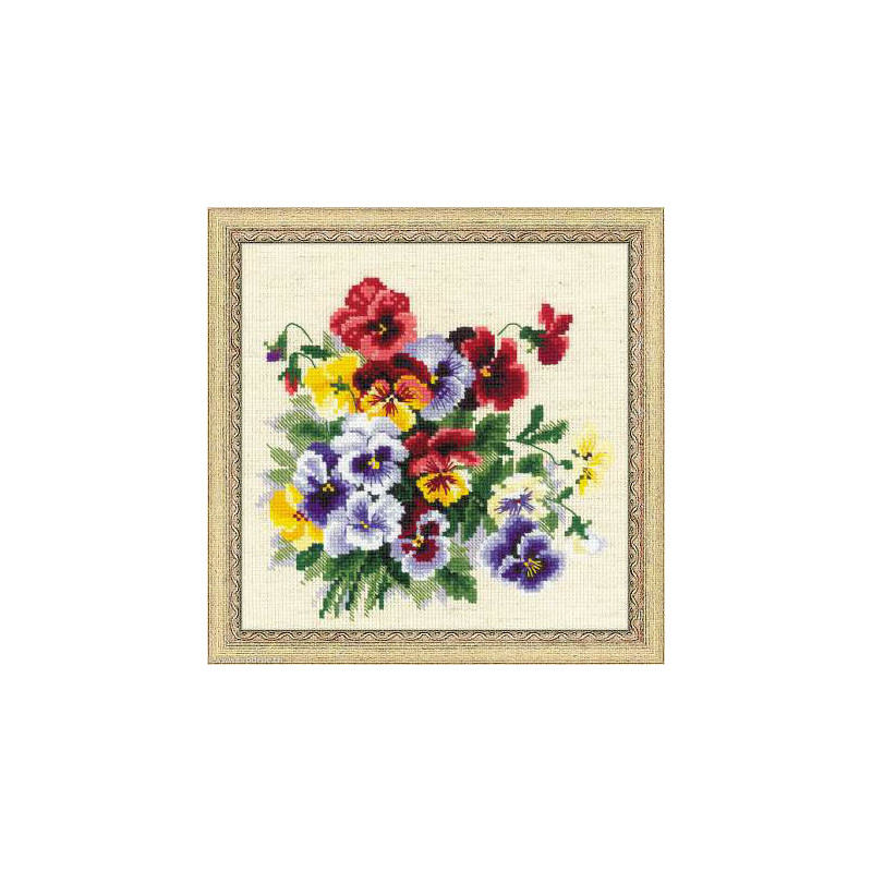 L'article 'Riolis, kit Pansy Medley (RI1516)' fait partie de notre assortiment depuis le 24 novembre 2015. La gamme Riolis nous vient de Lituanie et propose une grande diversité de kits de points de croix comptés : paysages, animaux, saisons, modèles modernes et rétros, kits faciles et avec perles, reproduction de tableaux de maîtres. Sa particularité est essentiellement d'utiliser pour la plupart de ses kits de la laine très fine, idéale pour donner un aspect soyeux à la broderie. Pensez à bien regarder dans "plus de détails" du kit qui vous intéresse si le kit est avec laine ou mouliné. Tous les kits sont livrés avec de l'aïda 5,5 points/cm (Aïda 14) ou plus large (marqué aïda 10). il est cependant facile changer de trame, sauf pour les quelques kits ou l'aïda est imprimé par un dessin dans le fonds (références commençant par RIPT). Les kits mentionnés comme "facile" le sont car ils sont brodés sur de l'aïda 4.5 points/cm, mais ne sont pas conseillés pour un premier ouvrage d'enfant, car la plupart sont livrés avec de la lainev :-) Explication en russe et en anglais